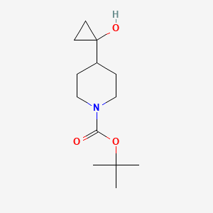 The mechanism of action of tert-Butyl 4-(1-hydroxycyclopropyl)piperidine-1-carboxylate involves its interaction with specific molecular targets and pathways. The compound may act by binding to enzymes or receptors, thereby modulating their activity. The exact molecular targets and pathways can vary depending on the specific application and context of use .