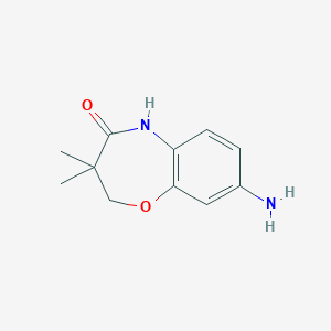 8-Amino-3,3-dimethyl-2,3,4,5-tetrahydro-1,5-benzoxazepin-4-one is a heterocyclic compound that has garnered attention in pharmacological research due to its potential therapeutic applications. This article explores the biological activity of this compound, focusing on its pharmacological properties, mechanisms of action, and relevant case studies.