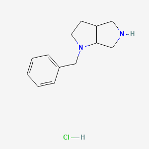 The mechanism of action of 1-Benzyloctahydropyrrolo[3,4-b]pyrrole hydrochloride involves its interaction with specific molecular targets and pathways. The compound can bind to enzymes or receptors, modulating their activity and leading to various biological effects. The exact molecular targets and pathways depend on the specific application and the context in which the compound is used .