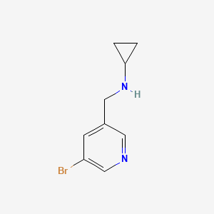 The synthesis of N-[(5-bromopyridin-3-yl)methyl]cyclopropanamine typically involves the reaction of 5-bromopyridine-3-carboxaldehyde with cyclopropanamine. The reaction is carried out under controlled conditions, often using a solvent such as ethanol or methanol. The reaction mixture is stirred at room temperature or slightly elevated temperatures to facilitate the formation of the desired product.