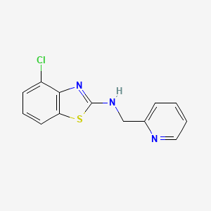 4-Chloro-N-(pyridin-2-ylmethyl)-1,3-benzothiazol-2-amine is a compound that falls within the class of benzothiazoles, which are known for their diverse biological activities. This compound is characterized by a chloro group at the 4-position, a pyridin-2-ylmethyl group attached to the nitrogen atom, and an amine group at the 2-position of the benzothiazole ring. Its unique chemical structure makes it a subject of interest in various fields, particularly in medicinal chemistry and pharmacology.