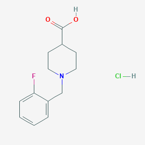 The synthesis of 1-(2-Fluorobenzyl)piperidine-4-carboxylic acid hydrochloride typically involves the reaction of 2-fluorobenzyl chloride with piperidine-4-carboxylic acid under specific conditions . The reaction is usually carried out in the presence of a base, such as sodium hydroxide, and an organic solvent, such as dichloromethane. The resulting product is then purified and converted to its hydrochloride salt form.
