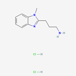 3-(1-methyl-1H-benzo[d]imidazol-2-yl)propan-1-amine dihydrochloride plays a significant role in various biochemical reactions. It interacts with several enzymes, proteins, and other biomolecules, influencing their activity and function. For instance, imidazole derivatives are known to inhibit certain enzymes, such as cytochrome P450 enzymes, which are involved in drug metabolism. Additionally, this compound may interact with proteins involved in cell signaling pathways, thereby modulating cellular responses.