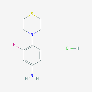 The mechanism of action of (3-Fluoro-4-thiomorpholin-4-ylphenyl)amine hydrochloride involves its interaction with specific molecular targets and pathways. The fluorine atom and thiomorpholine ring contribute to its binding affinity and selectivity towards these targets. The exact molecular targets and pathways involved depend on the specific application and context of use. Research is ongoing to elucidate the detailed mechanisms by which this compound exerts its effects.