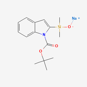 The mechanism of action of Sodium (N-(Boc)-2-indolyl)dimethylsilanolate involves its interaction with molecular targets through the indole moiety. The Boc group provides stability and protection during reactions, while the silanolate group enhances solubility and reactivity. The compound can modulate various biochemical pathways by binding to specific receptors or enzymes, influencing cellular processes .