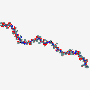 (2S)-5-amino-2-[[(2S)-2-[[(2S)-2-[[(2S)-2-[[(2S)-2-[[(2S)-1-[(2S,3S)-2-[[(2S)-2-[[(2S)-2-[[(2S)-2-[[(2S)-2-[[2-[[(2S)-2-[[(2S)-4-amino-2-[[(2S)-2-[[(2S)-2-[[(2S)-5-amino-2-[[(2S)-1-[(2S)-6-amino-2-[[(2S)-1-[(2S,3R)-2-[[2-[[(2S)-2-[[2-[[(2S,3R)-2-[[(2S)-2-[[(1R,6R,9S,12S,15S,18S,24S,27S,33S,36S,39R,44R,47S,53S,56S,59S,67S,73S,76S)-15,76-bis(4-aminobutyl)-44-[[(2S)-2-[[(4R,7S,10S,13S,19S,22S,25S,28R)-28-[[(2S)-2-[[(2S,3R)-2-[[(2S)-2-[[(2S,3R)-2-[[(2S)-2-amino-4-methylpentanoyl]amino]-3-hydroxybutanoyl]amino]-3-(4-hydroxyphenyl)propanoyl]amino]-3-hydroxybutanoyl]amino]-3-carboxypropanoyl]amino]-10-(2-amino-2-oxoethyl)-13-(3-amino-3-oxopropyl)-22-(2-carboxyethyl)-25-[(1R)-1-hydroxyethyl]-19-(hydroxymethyl)-7-(2-methylpropyl)-6,9,12,15,18,21,24,27-octaoxo-1,2-dithia-5,8,11,14,17,20,23,26-octazacyclononacosane-4-carbonyl]amino]-4-methylpentanoyl]amino]-12,56,73-tris(2-amino-2-oxoethyl)-9,67-bis(3-amino-3-oxopropyl)-36-[(2S)-butan-2-yl]-18,47-bis(2-carboxyethyl)-24-(carboxymethyl)-27,53-bis(hydroxymethyl)-33-(2-methylpropyl)-8,11,14,17,20,23,26,29,32,35,38,45,48,51,54,57,60,62,65,68,71,74,77-tricosaoxo-59-propan-2-yl-3,4,41,42-tetrathia-7,10,13,16,19,22,25,28,31,34,37,46,49,52,55,58,61,63,66,69,72,75,78-tricosazabicyclo[37.22.17]octaheptacontane-6-carbonyl]amino]-3-methylbutanoyl]amino]-3-hydroxybutanoyl]amino]acetyl]amino]-4-carboxybutanoyl]amino]acetyl]amino]-3-hydroxybutanoyl]pyrrolidine-2-carbonyl]amino]hexanoyl]pyrrolidine-2-carbonyl]amino]-5-oxopentanoyl]amino]-3-hydroxypropanoyl]amino]-3-(1H-imidazol-4-yl)propanoyl]amino]-4-oxobutanoyl]amino]-3-carboxypropanoyl]amino]acetyl]amino]-3-carboxypropanoyl]amino]-3-phenylpropanoyl]amino]-4-carboxybutanoyl]amino]-4-carboxybutanoyl]amino]-3-methylpentanoyl]pyrrolidine-2-carbonyl]amino]-4-carboxybutanoyl]amino]-4-carboxybutanoyl]amino]-3-(4-hydroxyphenyl)propanoyl]amino]-4-methylpentanoyl]amino]-5-oxopentanoic acid |