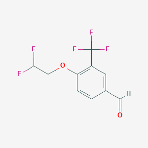 The synthesis of 4-(2,2-Difluoroethoxy)-3-trifluoromethylbenzaldehyde typically involves the introduction of difluoroethoxy and trifluoromethyl groups onto a benzaldehyde scaffold. One common method involves the reaction of 4-hydroxy-3-trifluoromethylbenzaldehyde with 2,2-difluoroethanol in the presence of a suitable base, such as potassium carbonate, under reflux conditions. The reaction proceeds via nucleophilic substitution, resulting in the formation of the desired product.