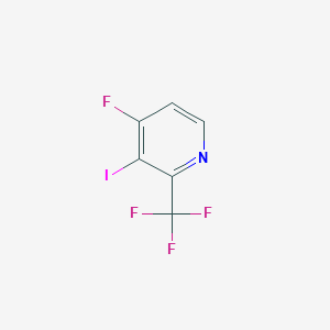 4-Fluoro-3-iodo-2-(trifluoromethyl)pyridine is a halogenated pyridine derivative characterized by a trifluoromethyl (-CF₃) group at position 2, a fluorine atom at position 4, and an iodine substituent at position 3. This compound belongs to the trifluoromethyl pyridine family, a class of heterocycles with significant applications in agrochemical and pharmaceutical research due to their enhanced lipophilicity, metabolic stability, and binding selectivity . The presence of fluorine and iodine introduces unique electronic and steric effects, making it a versatile intermediate for nucleophilic substitutions and cross-coupling reactions .