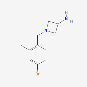 The mechanism by which 1-[(4-Bromo-2-methylphenyl)methyl]azetidin-3-amine exerts its effects involves its interaction with molecular targets such as enzymes and receptors. The bromine atom plays a crucial role in enhancing the binding affinity to these targets, leading to specific biological responses. The azetidin-3-amine group contributes to the compound's ability to modulate biological pathways, making it a valuable tool in medicinal chemistry.