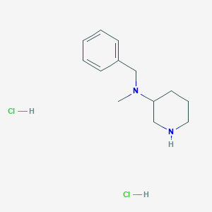 N-Benzyl-N-methyl-3-piperidinamine dihydrochloride possesses a definitive chemical identity established through multiple nomenclature systems and structural descriptors. The compound is officially registered under Chemical Abstracts Service number 1211499-03-4, with the molecular formula C14H24Cl2N2 representing the complete dihydrochloride salt form. The parent compound, prior to salt formation, exhibits the molecular formula C14H22N2 with a molecular weight of 218.34 grams per mole, while the dihydrochloride salt increases the molecular weight to 291.3 grams per mole. The International Union of Pure and Applied Chemistry systematic name for this compound is N-benzyl-N-methyl-1-piperidin-3-ylmethanamine dihydrochloride, reflecting the precise structural arrangement of substituents. Alternative nomenclature includes N-benzyl-N-methyl-1-(piperidin-3-yl)methanamine dihydrochloride and n-benzyl-n-methyl3-piperidinylmethanamine dihydrochloride, demonstrating the various accepted naming conventions within chemical literature.