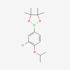 The synthesis of this compound typically involves the reaction of 3-chloro-4-isopropoxyphenylboronic acid with pinacol under acidic conditions. This method often employs palladium-catalyzed cross-coupling techniques to introduce the boron functionality onto the aromatic system, ensuring high yields and purity of the final product.