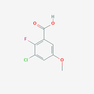3-Chloro-2-fluoro-5-methoxybenzoic acid is an organic compound with the molecular formula C8H6ClFO3. It is a derivative of benzoic acid, characterized by the presence of chlorine, fluorine, and methoxy substituents on the benzene ring. This compound is of interest in various fields of chemistry due to its unique structural features and reactivity.