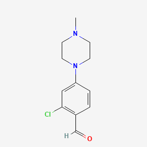 The synthesis of 2-Chloro-4-(4-methylpiperazino)benzaldehyde typically involves the reaction of 2-chloro-4-nitrobenzaldehyde with 4-methylpiperazine under specific conditions. The reaction is usually carried out in the presence of a suitable solvent and a catalyst to facilitate the formation of the desired product . Industrial production methods may vary, but they generally follow similar synthetic routes with optimizations for scale and efficiency .