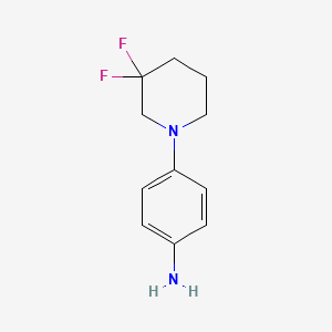 The molecular formula of 4-(3,3-Difluoropiperidin-1-yl)aniline is C10H12F2N2, with a molecular weight of approximately 198.21 g/mol. The compound features a piperidine ring substituted with two fluorine atoms and an aniline moiety, which is crucial for its biological activity.