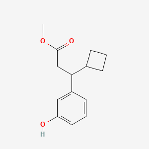 The mechanism of action of Methyl 3-Cyclobutyl-3-(3-hydroxyphenyl)propanoate involves its interaction with specific molecular targets. The hydroxy group can form hydrogen bonds with biological molecules, influencing their structure and function. The cyclobutyl ring provides rigidity to the molecule, affecting its binding affinity and specificity. The ester group can undergo hydrolysis, releasing the active hydroxyphenylpropanoic acid, which can interact with various enzymes and receptors .