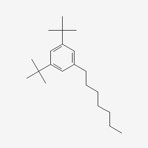 1,3-Di-tert-butyl-5-heptylbenzene is an organic compound with the molecular formula C21H36. It is a derivative of benzene, where two tert-butyl groups and one heptyl group are attached to the benzene ring. This compound is known for its unique structural properties and is used in various scientific research applications.
