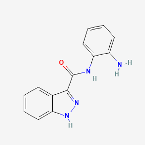 The mechanism of action of N-(2-aminophenyl)-1H-indazole-3-carboxamide involves its interaction with specific molecular targets, such as enzymes and receptors. The compound can inhibit enzyme activity by binding to the active site or allosteric sites, thereby blocking substrate access or altering enzyme conformation. It may also interact with cellular receptors, modulating signal transduction pathways and affecting cellular processes such as apoptosis and proliferation .