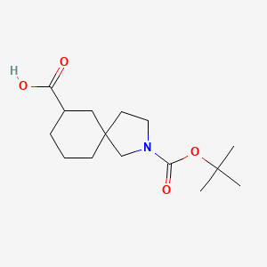 The mechanism of action of 2-[(Tert-butoxy)carbonyl]-2-azaspiro[4.5]decane-7-carboxylic acid involves its reactivity as a protected amine. The Boc group provides stability during synthetic transformations and can be selectively removed to reveal the free amine, which can then participate in further chemical reactions. The molecular targets and pathways involved depend on the specific application and the nature of the subsequent reactions .