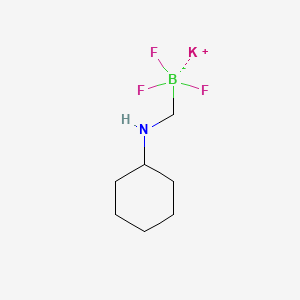 Potassium ((cyclohexylamino)methyl)trifluoroborate plays a significant role in biochemical reactions, particularly in the synthesis of boron-containing compounds. It interacts with enzymes, proteins, and other biomolecules through its trifluoroborate group, which can form stable complexes with various substrates. These interactions are crucial for facilitating reactions such as cross-coupling and borylation, which are essential in organic synthesis . The compound’s ability to form stable complexes with biomolecules makes it a valuable tool in biochemical research.