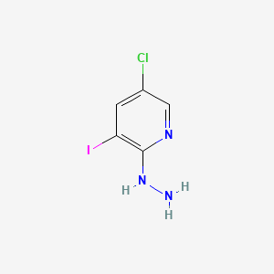 5-Chloro-2-hydrazinyl-3-iodopyridine (CAS: 942206-12-4) is a halogenated pyridine derivative with the molecular formula C₅H₅ClIN₃ and a molecular weight of 269.47 g/mol . Its IUPAC name, This compound, reflects the substituents on the pyridine ring: a chlorine atom at position 5, an iodine atom at position 3, and a hydrazine group (-NHNH₂) at position 2. Synonyms include (5-chloro-3-iodopyridin-2-yl)hydrazine and 5-chloro-3-iodopyridin-2-ylhydrazine.