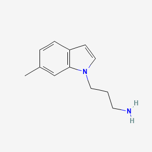 The mechanism of action of 3-(6-methyl-1H-indol-1-yl)propan-1-amine involves its interaction with specific molecular targets and pathways. The compound can bind to various receptors and enzymes, modulating their activity and leading to biological effects . For example, it may interact with serotonin receptors, influencing neurotransmitter signaling pathways .