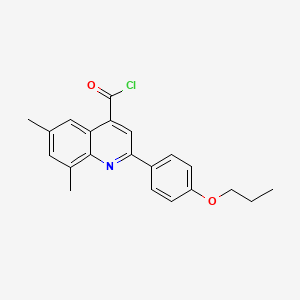 The mechanism of action of 6,8-Dimethyl-2-(4-propoxyphenyl)quinoline-4-carbonyl chloride involves its interaction with specific molecular targets, such as proteins or enzymes. The carbonyl chloride group is highly reactive and can form covalent bonds with nucleophilic sites on proteins, leading to inhibition or modification of protein function. This reactivity makes it a valuable tool in proteomics and medicinal chemistry .