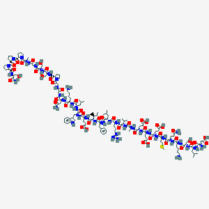 InChI=1S/C149H234N40O47S/c1-14-78(10)120(185-139(227)98(62-81-29-16-15-17-30-81)177-136(224)97(61-76(6)7)175-129(217)88(35-24-53-158-149(156)157)172-144(232)119(77(8)9)184-122(210)79(11)164-126(214)90(41-46-114(199)200)168-131(219)91(42-47-115(201)202)169-132(220)92(43-48-116(203)204)170-134(222)94(50-58-237-13)171-130(218)89(40-45-109(153)194)167-127(215)86(33-20-22-51-150)166-140(228)103(72-192)182-137(225)95(59-74(2)3)174-123(211)84(152)64-118(207)208)145(233)173-93(44-49-117(205)206)133(221)178-99(63-82-66-159-85-32-19-18-31-83(82)85)138(226)176-96(60-75(4)5)135(223)165-87(34-21-23-52-151)128(216)179-100(65-110(154)195)124(212)161-67-111(196)160-69-113(198)186-54-25-36-105(186)142(230)183-104(73-193)141(229)181-102(71-191)125(213)162-68-112(197)163-80(12)146(234)188-56-27-38-107(188)148(236)189-57-28-39-108(189)147(235)187-55-26-37-106(187)143(231)180-101(70-190)121(155)209/h15-19,29-32,66,74-80,84,86-108,119-120,159,190-193H,14,20-28,33-65,67-73,150-152H2,1-13H3,(H2,153,194)(H2,154,195)(H2,155,209)(H,160,196)(H,161,212)(H,162,213)(H,163,197)(H,164,214)(H,165,223)(H,166,228)(H,167,215)(H,168,219)(H,169,220)(H,170,222)(H,171,218)(H,172,232)(H,173,233)(H,174,211)(H,175,217)(H,176,226)(H,177,224)(H,178,221)(H,179,216)(H,180,231)(H,181,229)(H,182,225)(H,183,230)(H,184,210)(H,185,227)(H,199,200)(H,201,202)(H,203,204)(H,205,206)(H,207,208)(H4,156,157,158) | |