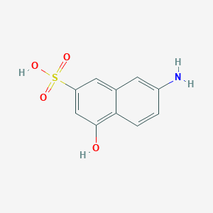 The mechanism of action of 7-amino-4-hydroxy-2-naphthalenesulfonic acid involves its ability to interact with various molecular targets through its functional groups. The amino group can form hydrogen bonds and participate in nucleophilic substitution reactions, while the hydroxy group can engage in hydrogen bonding and oxidation-reduction reactions. These interactions enable the compound to modulate biochemical pathways and exert its effects in different applications .