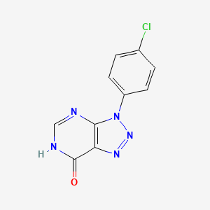 The mechanism of action of 3-(4-Chloro-phenyl)-3,6-dihydro-[1,2,3]triazolo[4,5-d]pyrimidin-7-one involves its interaction with molecular targets such as CDKs. The compound binds to the active site of CDKs, inhibiting their activity and thereby disrupting the cell cycle progression. This leads to apoptosis in cancer cells, making it a promising candidate for anticancer therapy . Molecular docking studies have shown that the compound forms hydrogen bonds with key residues in the active site of CDKs, enhancing its inhibitory potency .