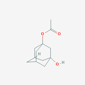 Adamantane-1,3-diol monoacetate is a derivative of adamantane, a rigid, diamondoid hydrocarbon structure known for its thermal stability and unique stereoelectronic properties. Monoacetates of 1,3-diols are typically synthesized via selective acetylation, often leveraging enzymatic or catalytic methods to achieve regioselectivity. For adamantane derivatives, the rigid framework likely influences reactivity, steric accessibility, and applications in stereoselective synthesis or pharmaceutical intermediates .