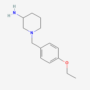 The synthesis of 1-[(4-Ethoxyphenyl)methyl]piperidin-3-amine typically involves the reaction of 4-ethoxybenzyl chloride with piperidin-3-amine under basic conditions. The reaction is usually carried out in the presence of a base such as sodium hydroxide or potassium carbonate in an organic solvent like dichloromethane or toluene. The reaction mixture is stirred at room temperature or slightly elevated temperatures until the reaction is complete. The product is then purified by recrystallization or column chromatography.