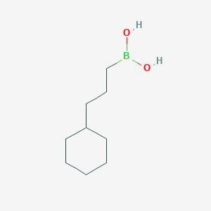 While specific, detailed research findings on the direct application of this compound are not extensively documented in publicly available literature, its significance lies in its commercial availability as a research chemical and building block. google.comchembuyersguide.comgoogle.com Chemical suppliers categorize it for use in the synthesis of more complex molecules, particularly within the pharmaceutical and material science sectors. google.comgoogle.com Its utility can be inferred from the well-established reactivity of alkyl boronic acids. It is anticipated to be a competent coupling partner in Suzuki-Miyaura reactions with various aryl and heteroaryl halides or triflates, enabling the synthesis of compounds containing the cyclohexylpropyl motif. Such structures are of interest in medicinal chemistry, where saturated carbocyclic rings like cyclohexane (B81311) are often incorporated to modulate properties such as solubility, metabolic stability, and receptor binding.