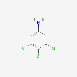 This technical guide provides a comprehensive overview of a synthetic route to produce 3,4,5-trichloroaniline, a valuable intermediate in the pharmaceutical and agrochemical industries, starting from 1,2,3-trichlorobenzene (B84244). The synthesis is a two-step process involving an initial electrophilic nitration of the starting material, followed by the reduction of the resulting nitro compound. This document details the experimental protocols, presents quantitative data in a structured format, and includes a visual representation of the synthetic workflow.