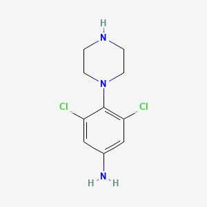 Synthetic Routes and Reaction Conditions: The synthesis of 3,5-Dichloro-4-piperazin-1-ylaniline typically involves the reaction of 3,5-dichloroaniline with piperazine under specific conditions. The reaction is usually carried out in the presence of a suitable catalyst and under controlled temperature and pressure to ensure the formation of the desired product.