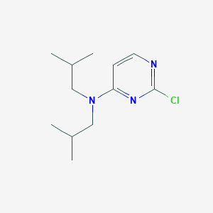 The mechanism of action of 2-chloro-N,N-bis(2-methylpropyl)pyrimidin-4-amine involves its interaction with specific molecular targets. The chlorine atom and isobutyl groups play a crucial role in its binding affinity and activity. The compound may inhibit or activate certain enzymes or receptors, leading to its observed biological effects.