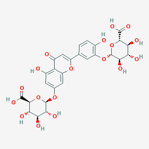 C1=CC(=C(C=C1C2=CC(=O)C3=C(C=C(C=C3O2)O[C@H]4[C@@H]([C@H]([C@@H]([C@H](O4)C(=O)O)O)O)O)O)O[C@H]5[C@@H]([C@H]([C@@H]([C@H](O5)C(=O)O)O)O)O)O | |