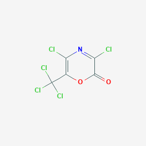 3,5-Dichloro-6-(trichloromethyl)-1,4-oxazin-2-one is a heterocyclic compound that features both chlorine and trichloromethyl groups