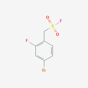(4-Bromo-2-fluorophenyl)methanesulfonyl fluoride plays a significant role in biochemical reactions. It interacts with various enzymes, proteins, and other biomolecules. One of its primary interactions is with serine proteases, where it acts as an inhibitor. The compound forms a covalent bond with the serine residue in the active site of the enzyme, leading to its inactivation. This interaction is crucial in studying enzyme kinetics and developing enzyme inhibitors for therapeutic purposes.