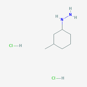 The dihydrochloride salt is prepared by treating (3-methylcyclohexyl)hydrazine with hydrochloric acid, resulting in protonation of the hydrazine nitrogen atoms and salt formation. This process is straightforward and typically involves: