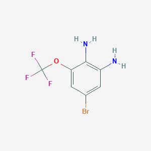 The mechanism of action of 5-Bromo-3-(trifluoromethoxy)benzene-1,2-diamine involves its interaction with specific molecular targets and pathways. The compound can bind to enzymes or receptors, modulating their activity. The trifluoromethoxy group enhances its lipophilicity, facilitating its interaction with hydrophobic regions of proteins. The amino groups can form hydrogen bonds with target molecules, stabilizing the compound-protein complex.
