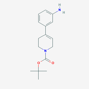 The synthesis of tert-Butyl 4-(3-aminophenyl)-5,6-dihydropyridine-1(2H)-carboxylate typically involves the reaction of 3-aminobenzaldehyde with tert-butyl acetoacetate and ammonium acetate under reflux conditions. The reaction proceeds through a Hantzsch dihydropyridine synthesis, which is a well-known method for the preparation of dihydropyridine derivatives. The reaction conditions generally include the use of ethanol as a solvent and heating the reaction mixture to around 80-90°C for several hours.