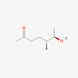 (5R,6R)-6-Hydroxy-5-methylheptan-2-one is a chiral aliphatic ketone characterized by a seven-carbon chain (heptan-2-one backbone) with hydroxyl and methyl substituents at the C5 and C6 positions, respectively. This compound belongs to the class of hydroxy ketones, which are of interest in organic synthesis, flavor chemistry, and pharmaceutical research due to their reactive functional groups and stereochemical complexity .