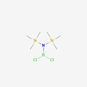 Boranamine, 1,1-dichloro-N,N-bis(trimethylsilyl)-, also known as N-(dichloroboryl)hexamethyldisilazane, is a chemical compound with the molecular formula C6H18BCl2NSi2 and a molecular weight of 242.10 g/mol . It possesses several synonyms, including [[dichloroboranyl(trimethylsilyl)amino]-dimethylsilyl]methane and N-(Dichloroboryl)-1,1,1-trimethyl-N-(trimethylsilyl)silanamine .