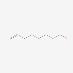 Omega (ω)-haloalkenes with terminal unsaturation are a specific category of halogenated hydrocarbons where the halogen atom is located at the opposite end of the carbon chain from a terminal double bond. This compound is a prime example of this structural motif, possessing an iodine atom at the C-8 position and a double bond between C-1 and C-2.