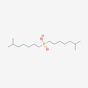 This compound, a member of the dialkylphosphinic acid family, holds a specific position within phosphinic acid chemistry due to its distinct structural features and resulting properties. evitachem.comwikipedia.org Its structure consists of a central phosphorus atom bonded to a hydroxyl group and two branched 6-methylheptyl groups. evitachem.com The presence of these bulky, hydrophobic alkyl chains is a key characteristic that influences its solubility and steric properties, making it highly soluble in organic solvents and less so in water. evitachem.com