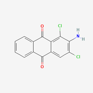 2-Amino-1,3-dichloroanthraquinone (CAS 6374-76-1) is a halogenated anthraquinone derivative with the molecular formula C₁₄H₇Cl₂NO₂ and a molecular weight of 292.12 g/mol . It features chlorine substituents at positions 1 and 3 and an amino group at position 2 on the anthraquinone backbone. This compound is primarily utilized in the synthesis of high-performance dyes and pigments, such as indanthrene blue BC, due to its stability and resistance to degradation under harsh conditions . The meta-positioning of chlorine atoms (relative to the carbonyl groups) optimizes electronic properties, enhancing its suitability for applications requiring color fastness .