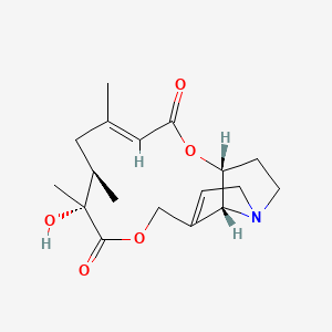 Necic Acids: These acids are esterified with the necine bases to form the complete alkaloid structure henriettes-herb.com. Necic acids typically contain 5 to 10 carbon atoms, excluding acetic acid, and exhibit structural diversity henriettes-herb.comeuropa.euuob.edu.ly. They are characterized as mono- or dicarboxylic acids with branched carbon chains and can feature various substituents such as hydroxy, methoxy, epoxy, carboxy, acetoxy, or other alkoxy groups henriettes-herb.comeuropa.euuob.edu.ly. This structural variability contributes to the existence of numerous structural, stereo-, and diastereoisomers henriettes-herb.comeuropa.euuob.edu.ly. This compound itself is an example of a 13-membered macrocyclic diester, resulting from the specific combination of a necine base with a necic acid henriettes-herb.comeuropa.eu.