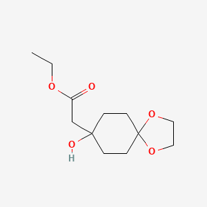 The mechanism of action of Ethyl 2-(8-hydroxy-1,4-dioxaspiro[4.5]decan-8-yl)acetate is not well-documented. its effects are likely mediated through interactions with specific molecular targets, such as enzymes or receptors, due to its unique spirocyclic structure. Further research is needed to elucidate the exact pathways involved.