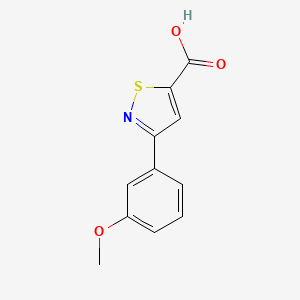 In the field of chemistry, 3-(3-Methoxyphenyl)isothiazole-5-carboxylic acid serves as a building block for synthesizing more complex heterocyclic compounds. Its unique structure allows chemists to explore various substitution patterns and reactivity profiles, making it an essential intermediate in organic synthesis.