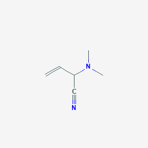 2-(Dimethylamino)but-3-enenitrile is an alkenenitrile derivative featuring a dimethylamino (-N(CH₃)₂) group at the β-position relative to the nitrile (-C≡N) functionality. This compound’s structure combines electron-withdrawing (nitrile) and electron-donating (dimethylamino) groups, making it a versatile intermediate in organic synthesis, particularly in polymer chemistry and pharmaceutical applications.